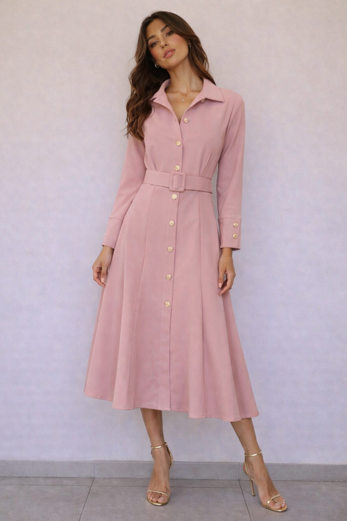 Abito mid con bottoni gioiello e cintura in vita