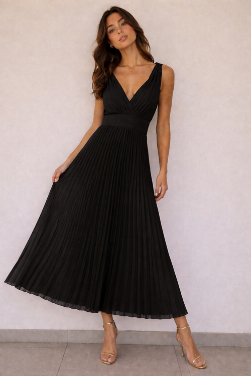 Abito lungo plissettato con scollo a V